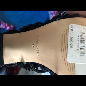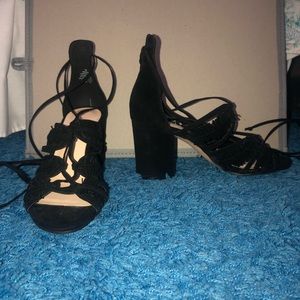 Black heals by Nine West size 6 super comfy that wrap around the leg, never worn, thick heal,