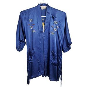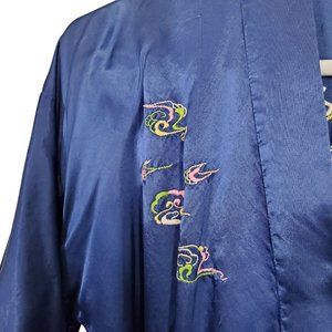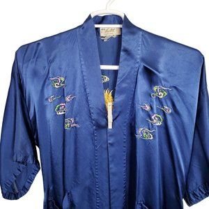Health Shanghai Size M Kimono Robe Silky Rayon Embroidered Dragon Tie Belt Blue