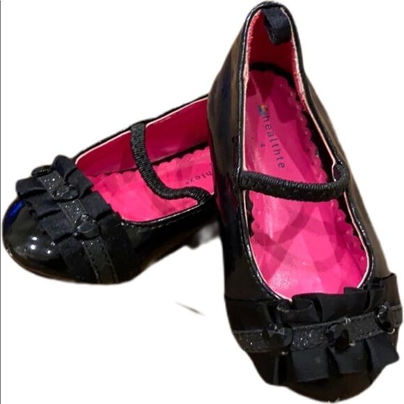 Healthex Dress Shoe Toddler black patent leather slip on jeweled Size 4