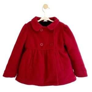 Charming red pea coat by Healthtex. Features double-breasted buttons. Very warm. Cozy and stylish for little ones. Adorable for the winter & holiday season!
