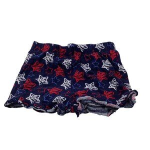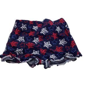 These ruffle hem shorts offer comfort and style with a patriotic star print. Made of cotton blend fabric, they ensure breathability and softness.