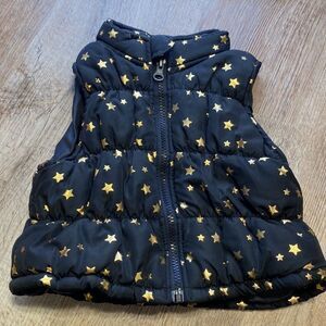 Healthtex Puffy Vests Set of 2 Bright Pink Silver Hearts Black Gold Stars 12 M