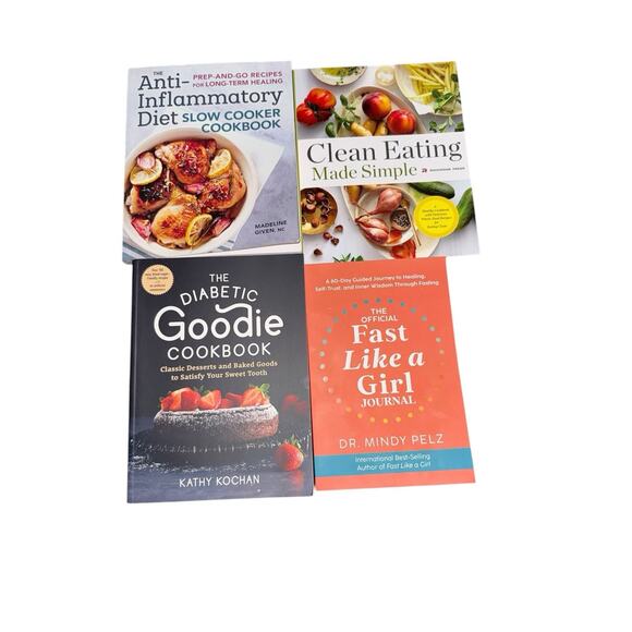 This Healthy Cookbook & Wellness Book Lot (Set of 4) includes a thoughtfully curated collection of guides designed to support clean eating, inflammation reduction, balanced blood sugar, and mindfulness through daily habits.
