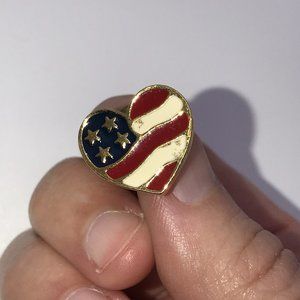 This heart shaped Pin is actually from Avon. It has the USA flag design on the pin. This pin is marked Made in the USA, 2001, and Avon.