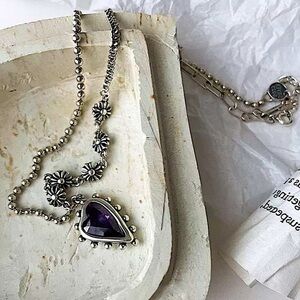 STERLING SILVER AMETHYST PENDANT PUNK NECKLACE