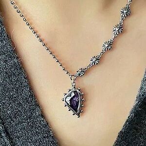 Heart Amethyst Sterling Silver Pendant Charm Punk Necklace