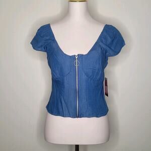 Heart And Moon Blue Tencel Denim Milkmaid Top Cottagecore Countrycore Sz L NWT