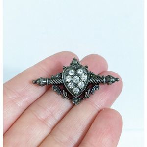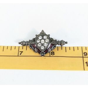 Heart And Rod Rhinestone Victorian Revival Brooch Pin - red enamel silver toned