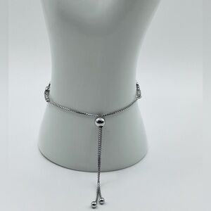 Elegant adjustable bolo bracelet, each heart has one tiny natural diamond on it.