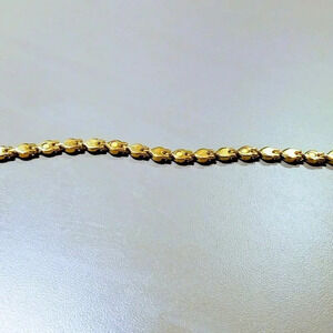Heart bracelet with alternating gold tone and silver tone hearts, clasps. See photos for complete condition and description. Smoke free environment. Measures 8" around.