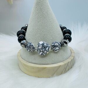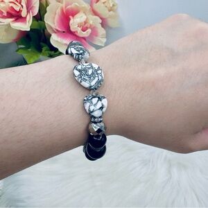 Heart Bracelet Stone Beaded Handmade Stretch Bracelet Multicolored