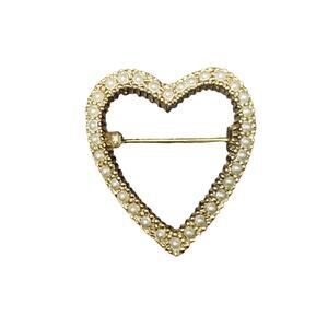 Heart Brooch Gold Tone w. Pearl Beads Inside Pin / Brooch