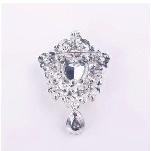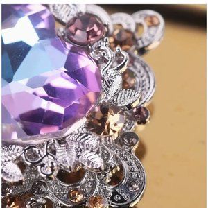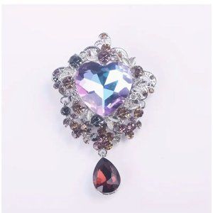 Heart Brooch Purple Blue Silver Tone Dangle Teardrop Rhinestone
