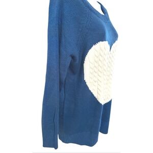 Heart Cable Knit Sweater Blue Cream Long Sleeve Womens XL