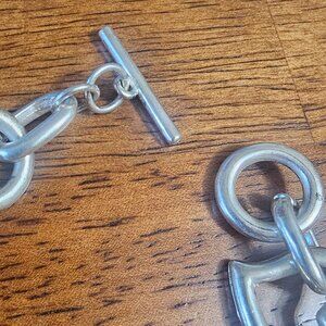 925 sterling silver heart link chain bracelet with toggle clasp. 8.5 inches long with slight wear.