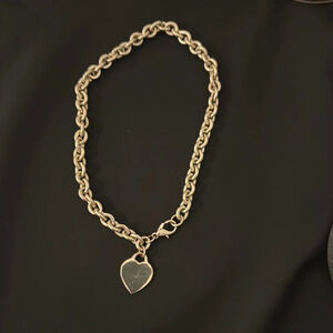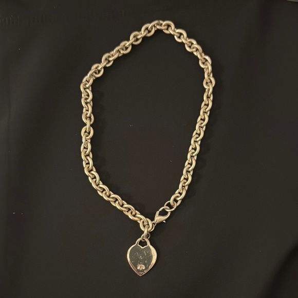 Elegant silver bracelet featuring a heart charm. Perfect for adding a touch of sophistication to any outfit. It has a G stamp on the back of the charm. Could be Guess or Gucci .