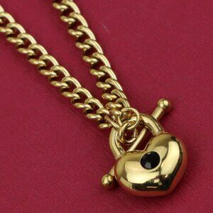 "Heart Charm Chunky Chain Yellow Necklace in Gold Finish, XPNL0375