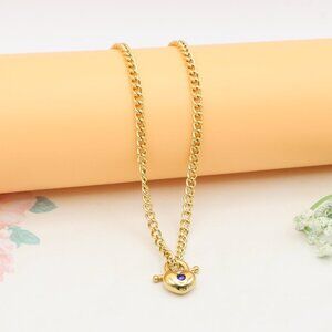 "Heart Charm Gold Necklace with Blue Stone – Elegant Chain Style, XPNL0379
