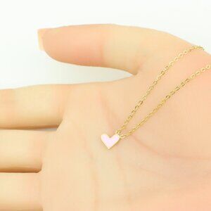 "Heart Charm Yellow Necklace with Pink Enamel, XPNL0369