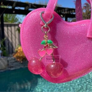 Heart Cherry Bag Charm Hot Pink Cherries Purse Keychain FortunateBagFinds