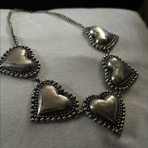 Amazing chunky heart shaped chocker measures 21” end to end laying flat. The hearts measure 2”x1.5”. It is in excellent condition. Pet and smoke free home