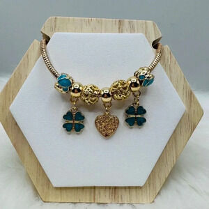 Rhinestone Heart, Clover & Flower Accents Charm Bracelet