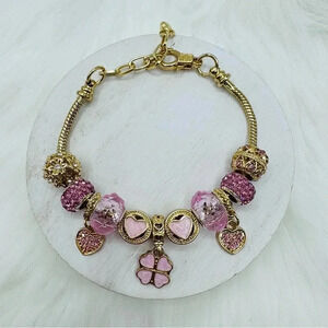 Rhinestone Heart, Clover & Flower Accents Charm Bracelet