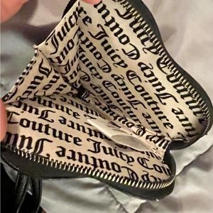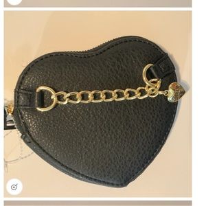 Faux textured leather, gold tone chain & heart charm hardware. “Juicy Couture” lining with zip closure. 5” across at widest part. NWOT