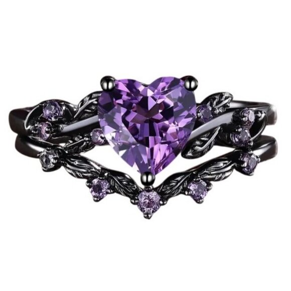 Absolutely gorgeous 2 piece bridal and engagement ring set!! Heart Cut Amethyst set in Rhodium with Moissanite side stones. Each ring is in itself gorgeous but put them together and WOW! Come in ring boxes.