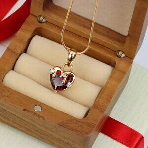 ✔️ Heart-shaped blood red gemstone with drip-effect crown