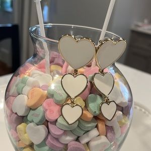 Cute white and gold heard earrings! Only worn once and sanitized!! 🫶