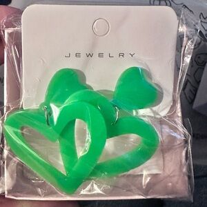 Stylish green heart-shaped drop earrings. Perfect for adding a pop of color.