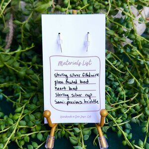 These charming Heart Earrings are full of love and color! Featuring cute heart beads I discovered while shopping in Japan, combined with semi-precious accent stones from my personal stash, these earrings bring together playful designs and natural beauty. Hand-wrapped with sterling silver-filled wire, each pair is unique and full of character. With four cute color variations, let me know your choice!