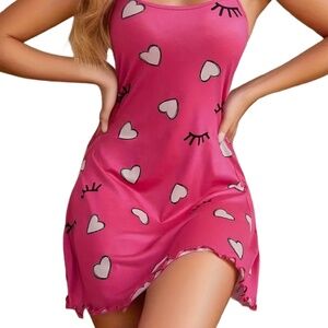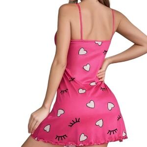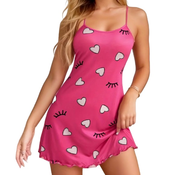 Heart Eyelashes Lingerie Slip Nightdress PJ Loungewear Lettuce Trim Sexy Pajamas
