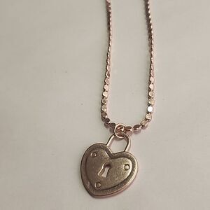 Heart Faux Padlock Rose Gold Tone Pendant Necklace