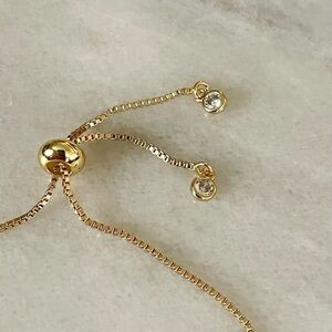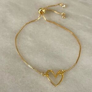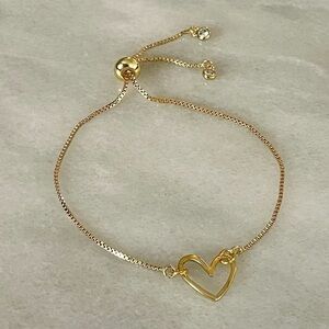 14k gold plated over brass heart charm bracelet. Bracelet has a toggle to adjust and two cubic zirconia stones at the end. Brand new boutique item, never worn.