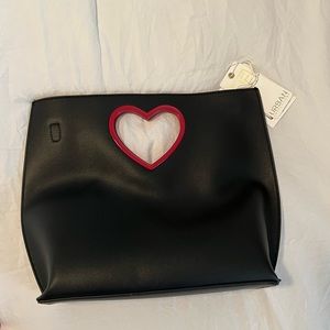 Brand New - Heart Handle Handbag with Black One Side, White Other Side, & Red Handle Trim