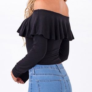 Heart & Hips Cropped Off Shoulder Ruffle Top