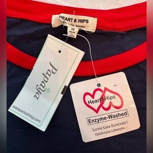 🎉Heart & Hips Enzyme Washed Crop Tee Blue & Red Size Medium NWT