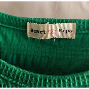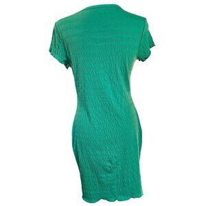 This short sleeve dress by Heart Hips features a textured design and a vibrant green hue. Made from a comfortable blend of polyester, cotton, and spandex, it's designed for a snug fit.