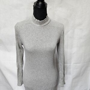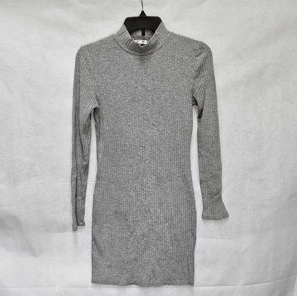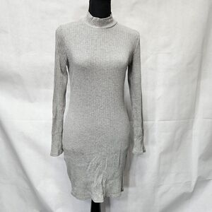 Heart & Hips grey long sleeve, ribbed turtleneck mini dress.