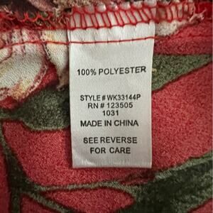 The floral print in soft blush and cream tones with green leaves pops beautifully against the striking red background, making this top a true statement piece. Lightweight and versatile, it transitions seamlessly from day to night—pair it with denim for a casual chic vibe, or dress it up with tailored pants or a skirt for an evening out.