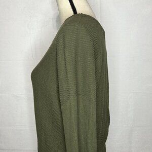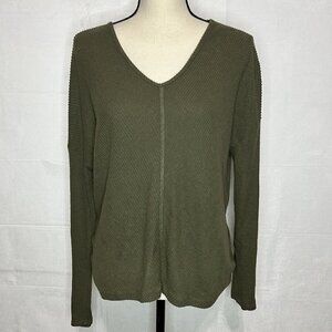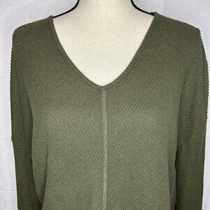 Heart & Hips Ribbed Open Twist Back Knit Olive Green Stretch Top Sz M