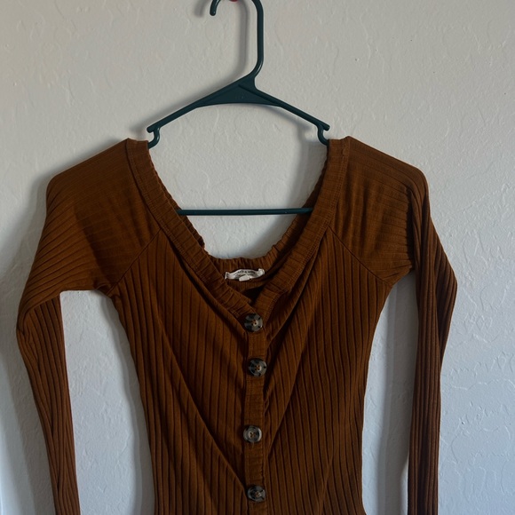 Chic rust ribbed top with button-up design. Ideal for everyday style.