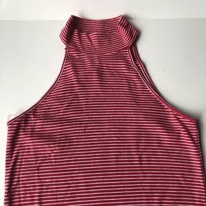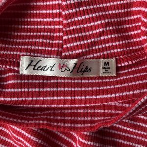 Add a touch of elegance to your wardrobe with this Heart & Hips Sleeveless Mock Turtleneck Women Dress. This dress is perfect for travel or casual occasions. The dress features a red and white stripe pattern with a sleeveless design and a mock neck neckline. The dress is made of a lightweight knit fabric that consists of polyester, spandex, and rayon. The dress has an A-line style with a short length, making it perfect for summer, fall, or spring. The garment care instructions recommend hand wash only. The dress is brand new and comes in size M (Junior) from China.