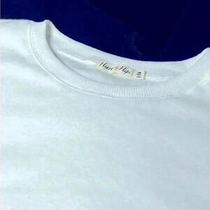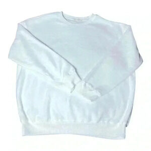 This white crewneck sweater by Heart & Hips features a relaxed fit, long sleeves with ribbed cuffs, and a soft, textured material for ultimate comfort. Crewneck sweater is NWOT, never worn and in excellent condition. Size M.