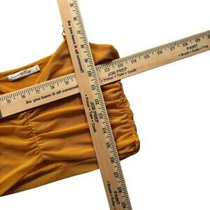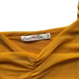 Heart & Hips ruched mesh cami crop top mustard yellow adjustable straps S Y2K