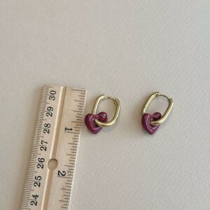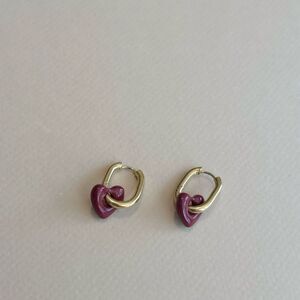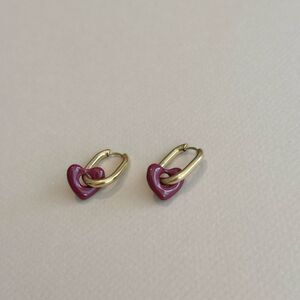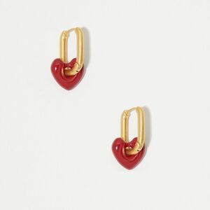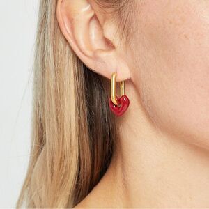Chic and stylish gold hoop earrings with a charming red heart accent. Perfect for adding a touch of elegance to any outfit.