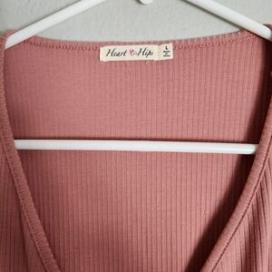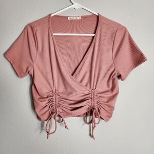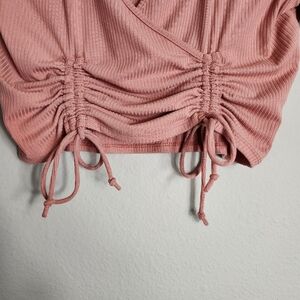 Heart Lips Womens Rose Pink Surplice Ruched Tie Bottom Ribbed Crop Top-Size L