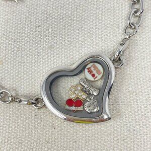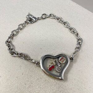 Heart Locket Bracelet Floating Charms Love Personalize Silver-Tone Mom Teacher